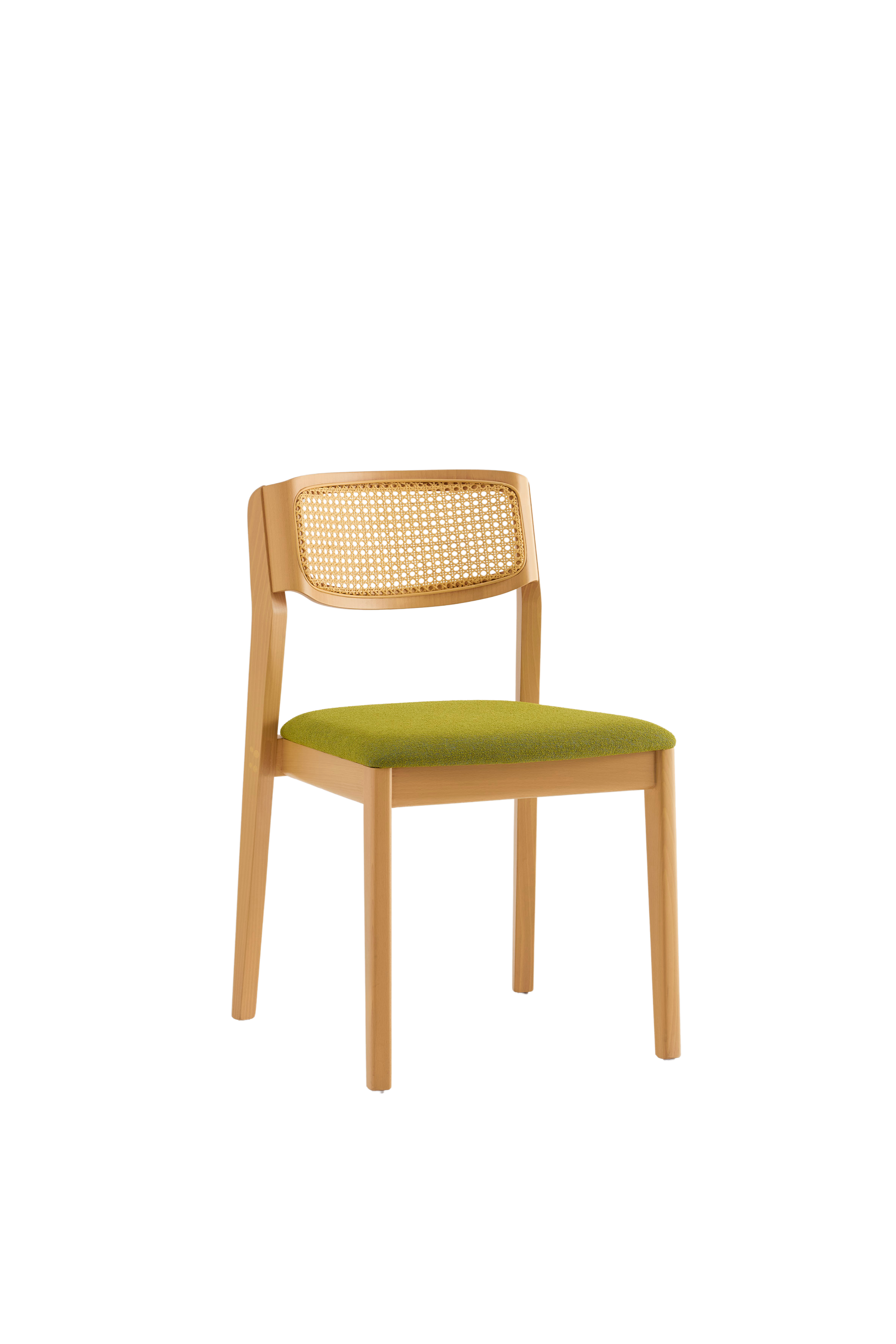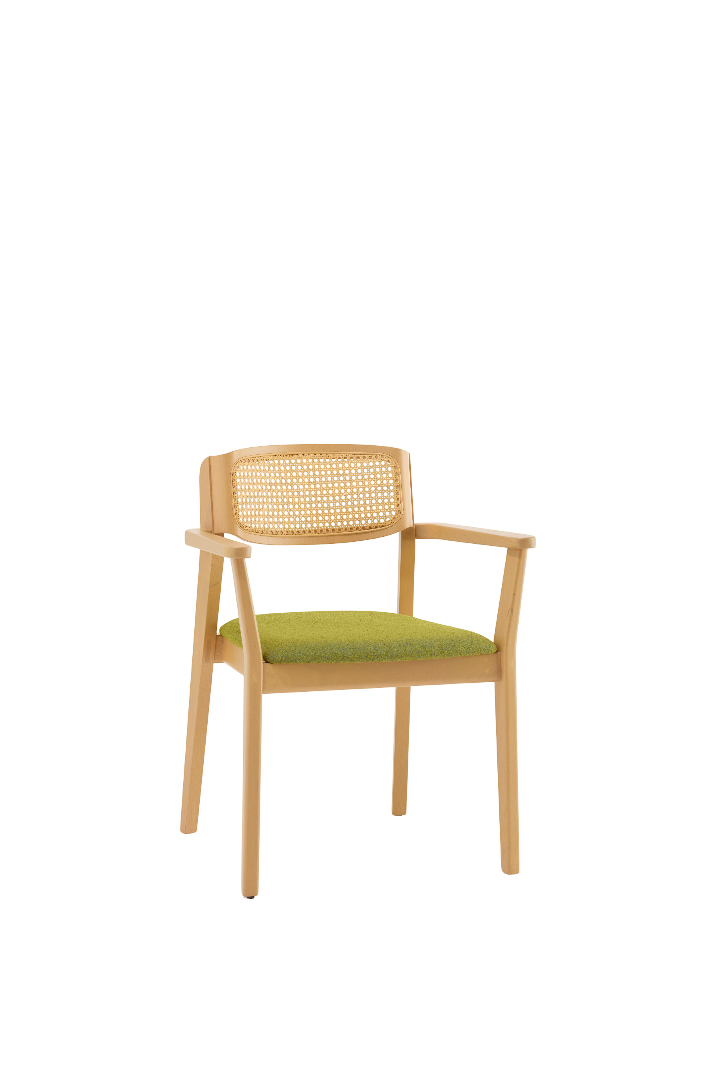 A version with an exposed backrest, A woven cane backrest, and a fully upholstered inner backrest for added refinement. Thanks to its versatile design, Wave is a perfect fit for a wide range of contract spaces—from stylish hotel and cruise ship restaurants to sophisticated conference rooms. Both chairs and armchairs are stackable, offering practical benefits without compromising on aesthetics. Completing the family, the Wave stool echoes the same design language and material choices, ensuring a cohesive look across different environment.